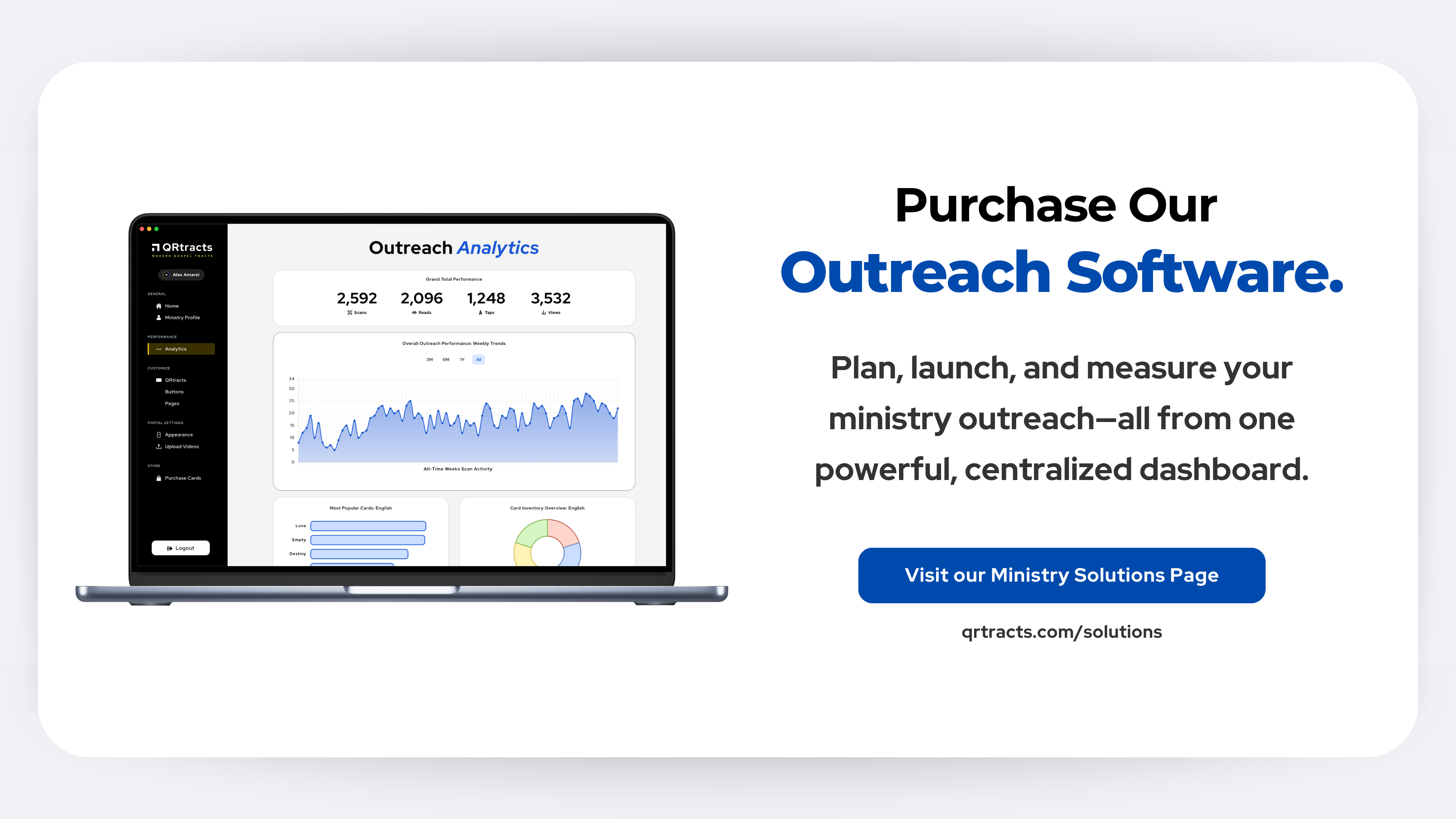 This digital format opens up new opportunities for Christians by acting as an all-in-one solution. It allows churches to control the content of each gospel tract, track how many people engage with it, promote their church, and much more.