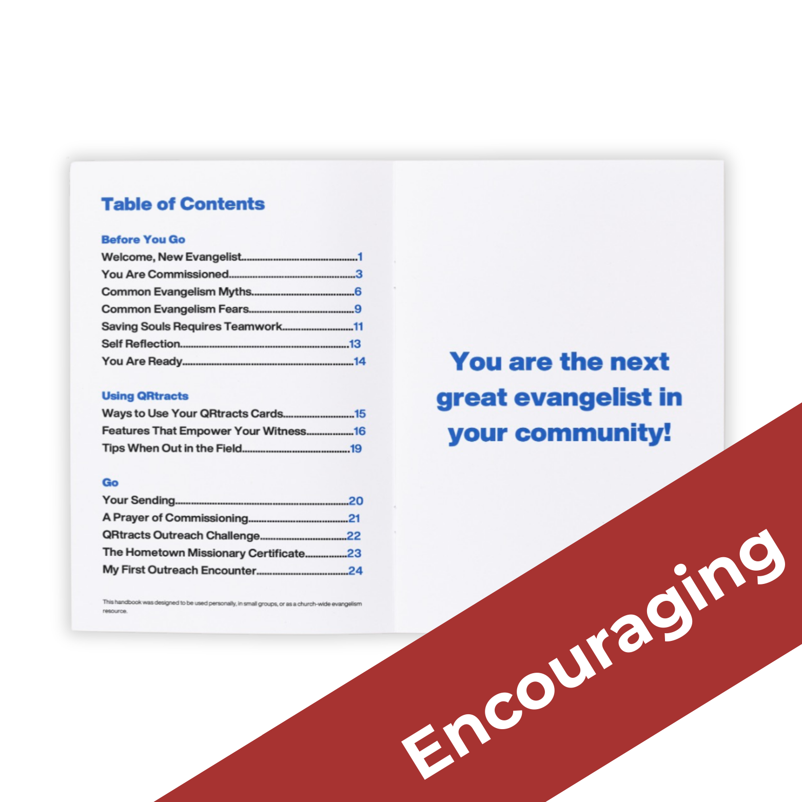 This handbook focuses on faithfulness over formulas. It reminds you that evangelism isn’t about checking boxes, hitting numbers, or having all the answers—it’s about loving people, listening well, and being willing when God opens a door.