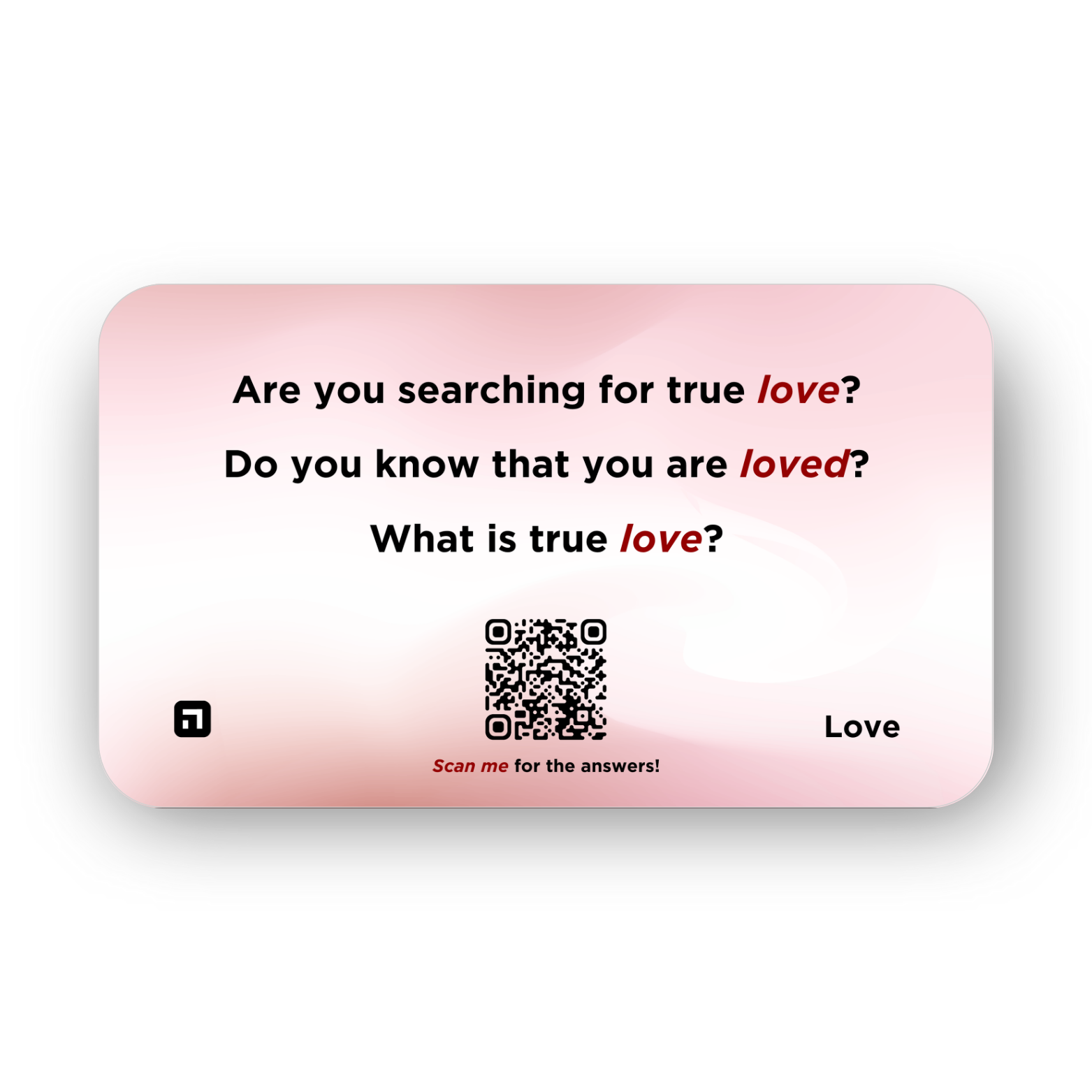 Everybody is searching for true love, and only a few find it. Love has been diluted and, in most cases, manipulated to mean something it is not. Reveal true love, which is only found in Christ, to others using this QRtract™. Help people find the love of God that everyone desires!