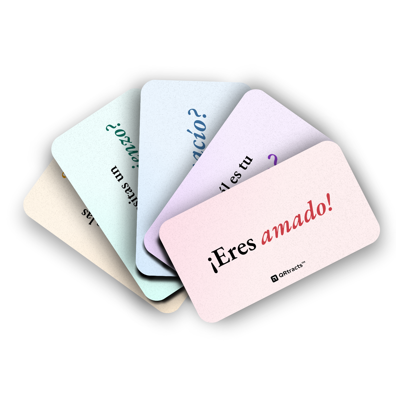 Share the gospel with the Spanish-speaking community using our Spanish QRtracts! These cards are available exclusively through print-on-demand, featuring bulk pricing—the more you order, the better the deal.