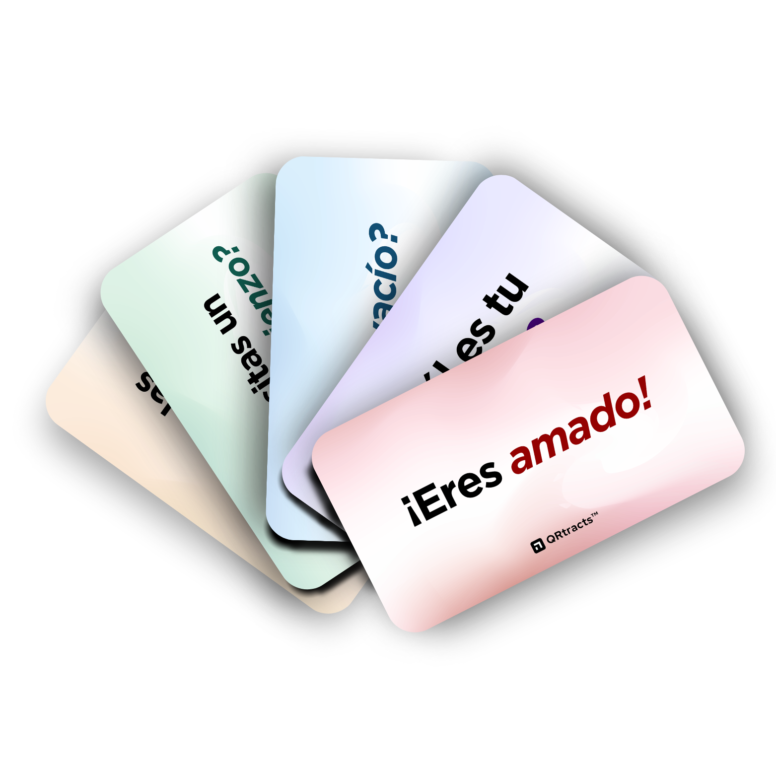 Share the gospel with the Spanish-speaking community using our Spanish QRtracts! These cards are available exclusively through print-on-demand, featuring bulk pricing—the more you order, the better the deal.